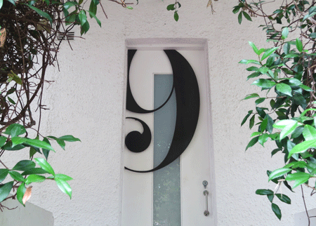 My friend found this number nine during her neighbourhood wanderings and was most taken with it, and keen that I should see it too. And it is indeed a most splendid number nine: bold and flamboyant but simultaneously a little secretive and teasing, not only because it tempts you to open the door and see if more will be revealed, but because it is circumscribed by shadowy greenery that hints at an inner life.