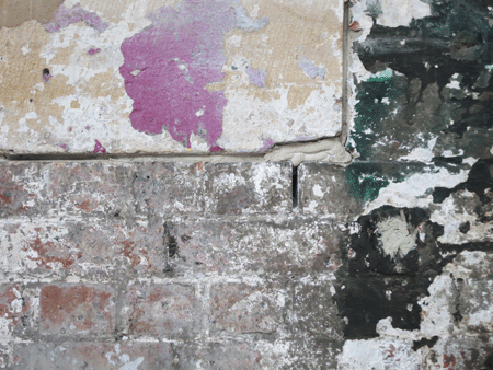 Here’s another one of those accidental wall works of art I like so much. Age, weathering, layers of worn paint, peeling paint, the splodge of mortar between the sandstone slab and the bricks. And on the left of the pinkish patch there’s some faint pencilled handwriting in the remnants of the plaster. I suspect it’s just some builder’s notes, but I like to think it is something more esoteric, a fleeting message lost in the passage of time.