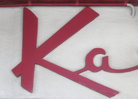 This K was a surprise find, especially because I have driven past it many times without realising it was there. I like its bold graphic nature and its hand-cut appearance, and that despite its large size it is well camouflaged under its protective awning. As I travelled a little further down the road to my destination I caught a whiff of something in the air, and, being in no particular hurry, I started exploring, in search of this mysterious but oh-so-familiar smell. And suddenly there it was, another large but completely unrelated red K on a factory chimney: inside they were cooking up a storm of cornflakes.