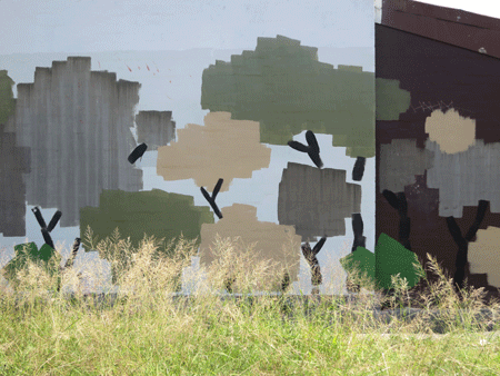 I’m guessing, but I bet this wall was painted by the cafe/gallery/landscapers on the opposite corner. It certainly improves their outlook. These abstract trees are so Australian in their greyness and grey-greenishness and even the grey-blue background has that hazy too-hot-summer quality. I was tempted to stop for a while just to sit at an outside table and admire the view.
