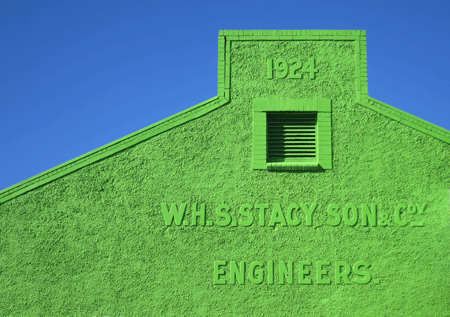 Blue and green should never be seen unless they’re in the washing machine. Or so my mother used to recite on washing days when I was young. Years later I heard that ‘blue and green should never be seen unless there’s a colour in between’ and I realised my mother had made up her very own version of the old saying to entertain me. Either way, what a ridiculous notion that certain colours should not go together—although I doubt the painters of this facade chose green because it would look fabulous against a cloudless blue sky, nor that painting it one bright colour would make the gothic sans letter forms stand out so well.