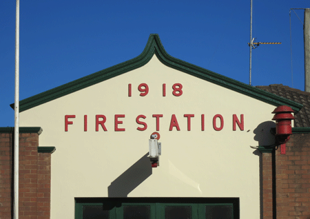 Mittagong fire station is noteworthy for having a female captain — the first female firefighter to be appointed to that position in the Southern Highlands. I like the building for the shape of its roofline and the clear, well-maintained, sans serif letters that stand out like a beacon in the clear afternoon light. I don’t know why there is an odd space in the date, but at least it has symmetry with the peak of the roof!