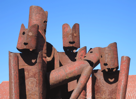 The NSW town of Walcha is quite a surprise. For a place with a population of around only 1600 it has a rich history: sheep farming, cedar, gold and slate mining for starters. In 1950 a Tiger Moth was the first aircraft to spread superphosphate in Australia. More recently Walcha Telecottage was established, which aids interaction between local communities with job training, education and internet services, and also produces the Apsley Advocate, a free and widely distributed weekly newsletter. Walcha has significant buildings, significant natural beauty, significant flora and fauna, notable sports people and artists, and a swag of OAM-awarded residents. And if that’s not enough, there are 41 pieces of open-air art around town! The sculptures are outstanding, and I was particularly taken with this figurative work, by Tom Deko, made from oil drums.