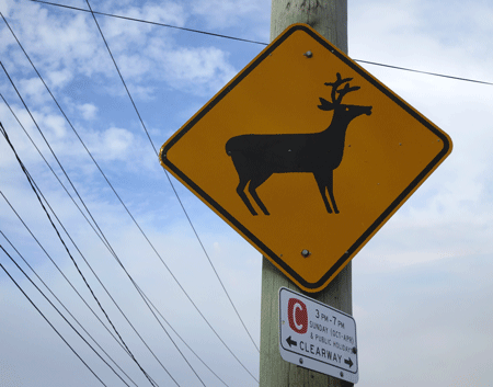 Deers were introduced to Sydney’s Royal National Park in 1906. The current population is estimated to be about 1700, and they are considered to be feral pests that are wreaking environmental havoc on a par with cane toads. These road signs appear along the stretch of highway near the entrance to the park, but something has gone awry. Every December (until this year, that is) the signs have sprouted red noses and sleighs for the duration of the silly season, temporarily transforming deer into reindeer, and bringing a dose of humour and good cheer to passing motorists. Altered sign or not, at least the clearway is operational so there’s a good chance that Dancer and Prancer et al (aided by Rudolph) will be able to make their deliveries on time.
