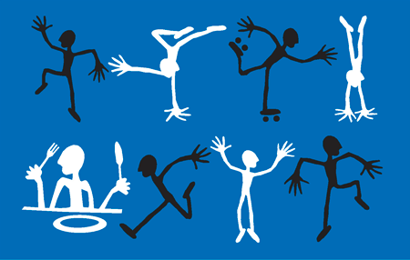 I was not happy with the idea that a digital font, especially a Lintotype font, could disappear: given the ever-expanding nature of the digital universe it seemed counter-intuitive. So, spurred along by an email from my friend, I discovered that, instead of disappearing, Giacometti has expanded. GiacomettiLL has become Giacometti Pi and is now accompanied by Giacometti Letter, with an impressive 425-strong character set that includes fractions and symbols. The fonts were designed by German illustrator Sine Bergmann, who also designed Linotype Festtagsfont (more stick figures, this time with a festive theme, as the name suggests), and Jump (with Leonore Poth), an informal handwritten script.