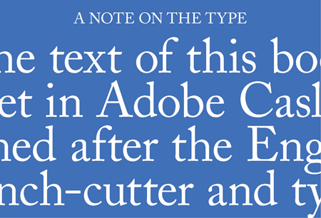 I am currently reading a library book published by Bloomsbury, and there are two things I know about Bloomsbury from first-hand experience. One is that they publish some excellent fiction—the calibre of writing is of a consistently high standard—and the other is that the last page of the book, after the acknowledgements and any other endmatter, is ‘A Note on the Type’. I wish all books would have this! My current book is set in Adobe Caslon, and I am given a brief but exceedingly interesting history of the typeface.