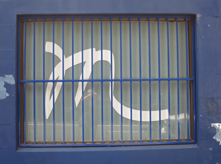 I don’t know what this m doing here, trapped inside and looking out, but I feel a little like it today. Sydney is doing its all-or-nothing weather thing, and today it’s bucketing down. The sensible course of action would be to stay indoors and keep dry: but I have things to do which involve going outside and braving the elements. From a typographic and design standpoint, I like this scripty m, and would like to know what it’s story is. I saw nothing around it to give any clue, although the building did have a security camera and alarm—perhaps to make sure the m doesn’t make a break for it.