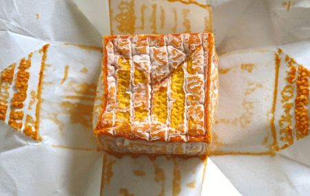 A food theme seems to have emerged over the last week or so, and here’s another one to add to the mix. This French cheese tasted amazing, and before we even cut into it, there was a collective oooh aaah of admiration from the half a dozen diners at the table. No one batted an eyelid at the idea that someone wanted to photograph it, but I think it was only me that saw an embossed Gill Sans M.