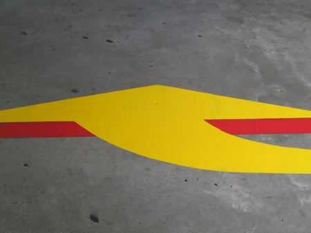 I love red and yellow together. And I love solid blocks of gutsy colour. This arrow, on the smooth grey concrete floor of the parking lot at my local shopping centre, is positively luscious! The dirty grey stops it from having any pretensions of prettiness—another point in its favour—and highlights the unadulterated mass of primary colour. I’ll need to keep my eye on this yellow arrow: for now, the newly applied paint is vibrant and clean, but in a few months it will have been run over by thousands of dirty car tyres and walked on by thousands of pedestrians, so it could get even more interesting.
