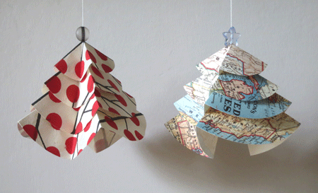 This year has been fairly quiet in the lead up to Christmas, but my book group had a good turnout for our last meeting of the year, where we ate too much chocolate and home-made fruit cake, had a bookish Secret Santa, and, in the wake of our first group exhibition, talked about possibilities for next year. These paper trees were made for each of us by Julie Bookless, who, with her usual perspicacity, matched the colour and paper of every one she made to our bookmaking personalities. Julie constructed the trees using the first stage of the Turkish map fold.