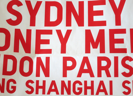My friend gave me a pair of lava earrings. I quizzed her about her choice—wondered if it was because she knows I am so taken with Haleakala, Mauna Kea and Kilauea. She said that was partly the reason, the other factor being that the graphic blackness of them suited the designer in me. But that’s only half the story of her considered gift-giving. The other was the package it came in: a carry bag, massive in proportion relative to the gift within, but perfect nonetheless. Red sans serif upper case city names repeated over and over on a white background.