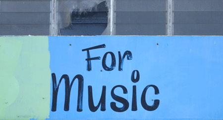 I’d like to know what the green paint is covering, but as far as the sentiment goes, I’m all for music too. Whether they left the words unobscured on purpose, or just because it wasn’t the part that, for whatever reason, needed to be covered up, hardly matters. This has the look of the hand-drawn, and I like it for that too.