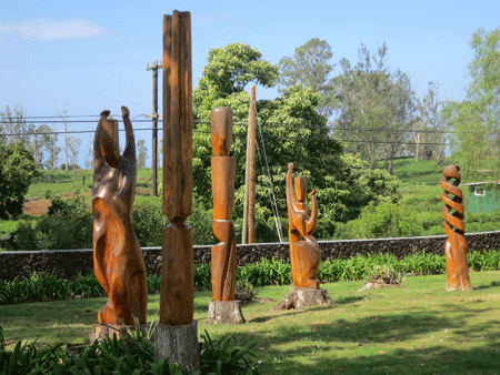 The hula circle, on the lawn in front of Maui’s Winery at Ulupalakua Ranch, was originally a ring of cypress trees planted by King David Kalakaua in the 1870s. The circle, in which his dancers would perform, symbolised an era of reawakening for Hawaiian culture and tradition. In 2012, two of the 145-foot trees were destroyed by a late winter storm, and others were subsequently found to be unsafe. To preserve the deep meaning of the circle, artist Tim Garcia was asked to carve the remaining stumps in a way that told their story. The result is an arresting and beautiful sight: three hula dancers, three guardians, two obelisks, an infinity vessel and a figure representing Kalakaua, his arm raised in a welcoming gesture for all to come and celebrate the legacy of Ulupalakua. Halau—hula schools—come from around the world to dance in this circle, which the locals say has become more defined with the loss of height. And the salvageable wood from the old trees was milled onsite for new fencing.
