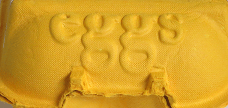 Embossing the word ‘eggs’ into the end of an egg carton strikes me as completely superfluous. Egg cartons are an unmistakable item of packaging and, just in case you need clarification on the contents, they invariably have detailed printed labels stuck on the top. But I’m rather pleased they added the unnecessary touch. ‘Eggs’ is such a typographically pleasing word when it’s displayed large using a serif typeface with a double-bowl g. The yellow is pretty striking too—just the colour egg yolks used to be, and so much sunnier than the usual off-white, beige or greige cartons.