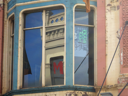 It’s views like this that make me love the city so much. I have passed this building hundreds—perhaps thousands—of times since I have lived in Sydney, but on this day I was walking towards it from a particular direction at a particular time of day with particular light conditions, and I saw, for the first time, the sideways neon sign in the window and the reflection of the M. It’s not just the pool room sign on the reflection of antennas that I love, but the shape of the windows, the rich colours, and the beauty of the architecture despite the fact that the building has seen better days.