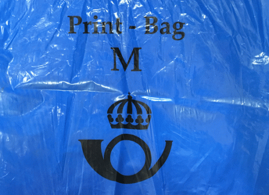It’s remarkably easy to accumulate offcuts, scraps, printed bits and pieces and ephemera, all intended to be used later in some collage, artists’ book or other artwork. Each piece invariably holds some special appeal at the time, but later, going through those piles of saved precious commodities, the appeal of much of it can have evaporated. I have a busy year ahead, and I’m preparing for it by clearing space and assessing the material I need to keep and that which I need to discard or reassign. I find that I am discarding more than I am keeping, an enlightening process because it’s showing me how my art practice has changed and developed over the last year or so. I’m also finding things I had forgotten about—which are now providing new inspiration—and items like this blue post bag from Sweden, which must have contained a delivery of books bought online, that will go back into the pile to be reassessed at some future point in time.