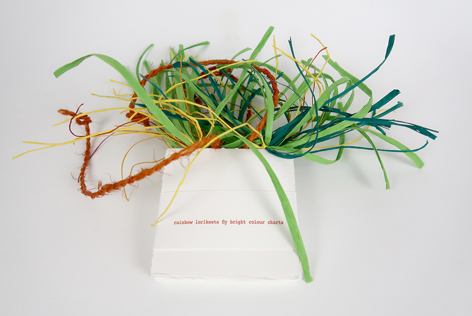 I made these books accompanied by the relentless chatter and squawking of rainbow lorikeets in my garden, and their continued presence allowed me to interpret the sound of their calls.