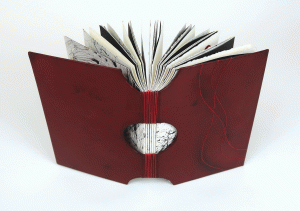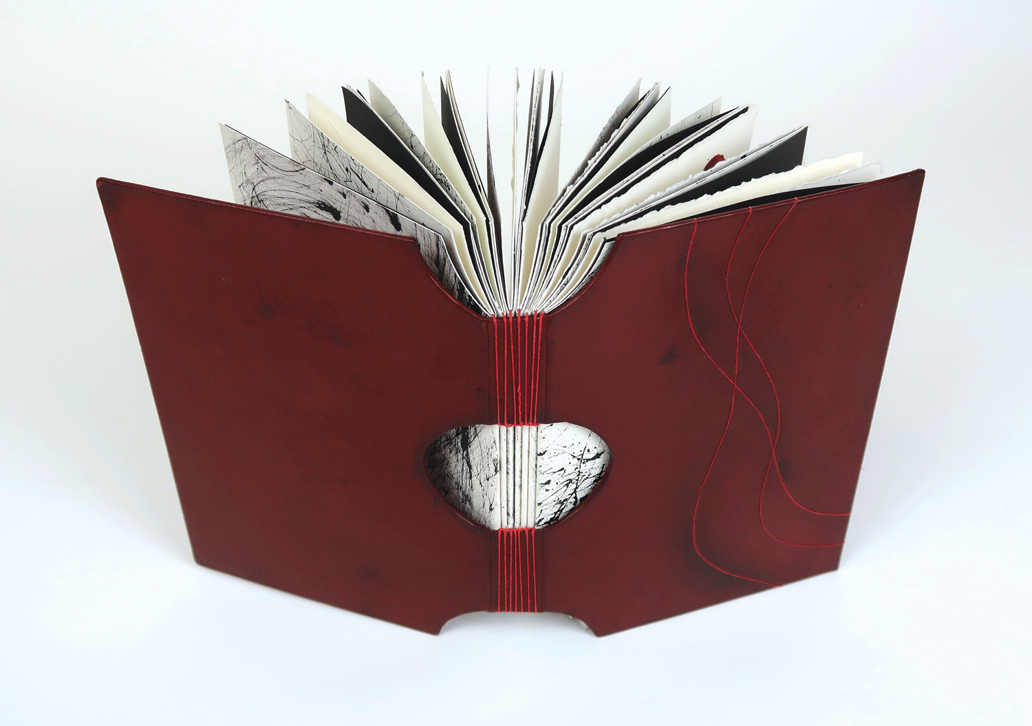 The content of my book being predominantly worked in black and white, there was a ‘place’ for the colour red to give more definition and interest.