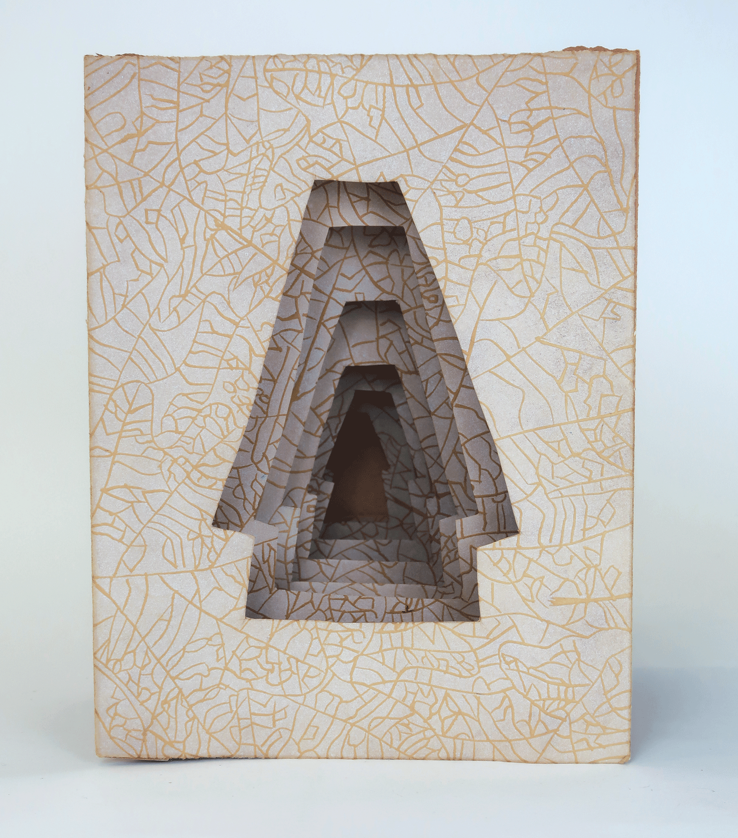 Hand-cut and plant-dyed Hahnemühle paper, relief woodcut on Stonehenge paper